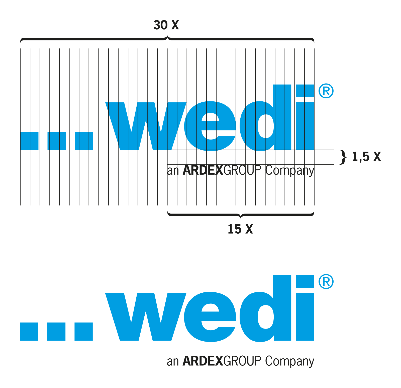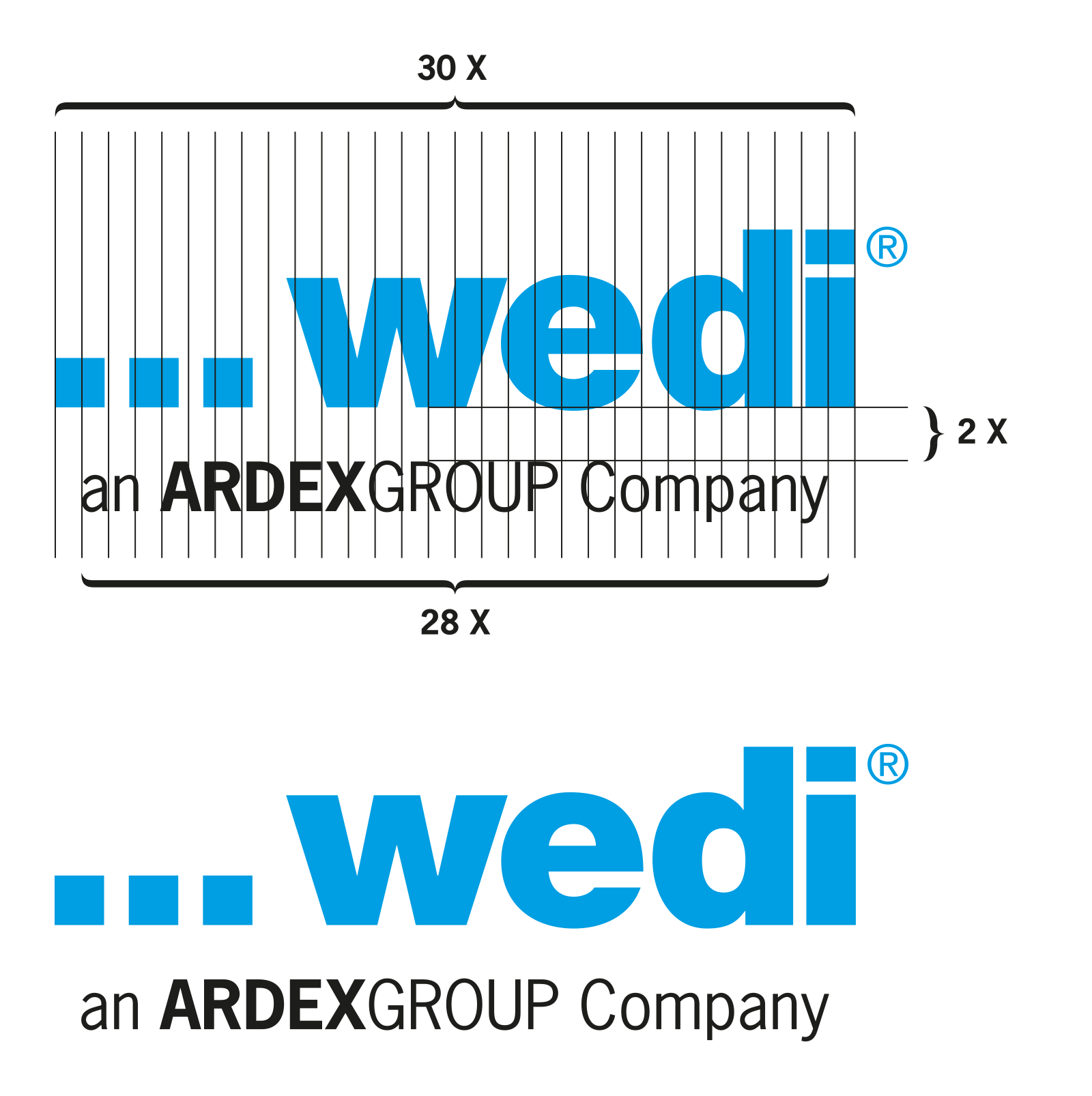 The example of wedi clearly shows that there are three graduated versions of the logo design, which are used depending on size: