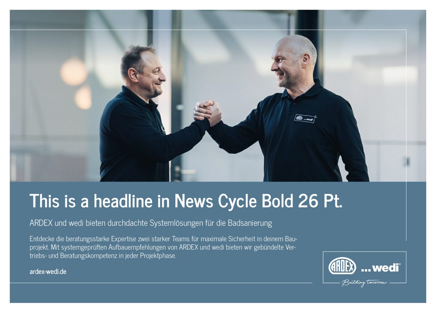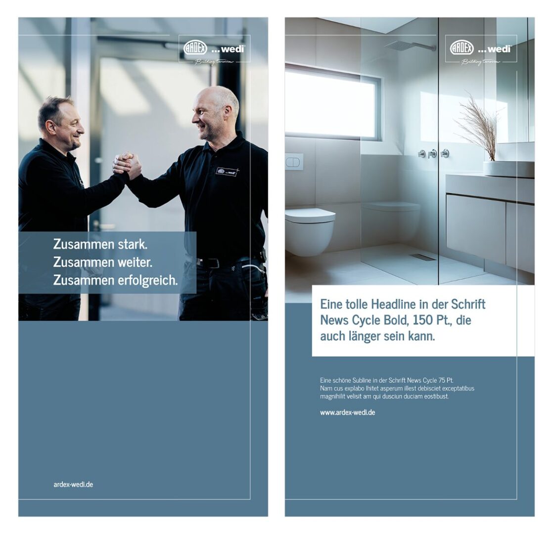 The house font News Cycle is sans serif, modern and timeless. It is characterized by good legibility and clarity.