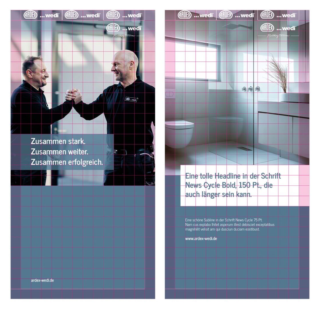 There is considerable creative freedom in the layout, as images can be used in all sizes and the amount of text can be adjusted accordingly.
