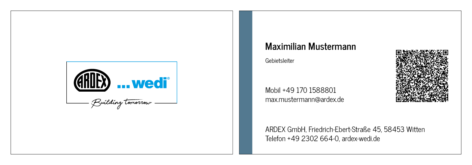 The QR code contains the personal data of the aforementioned person and has to be customized.