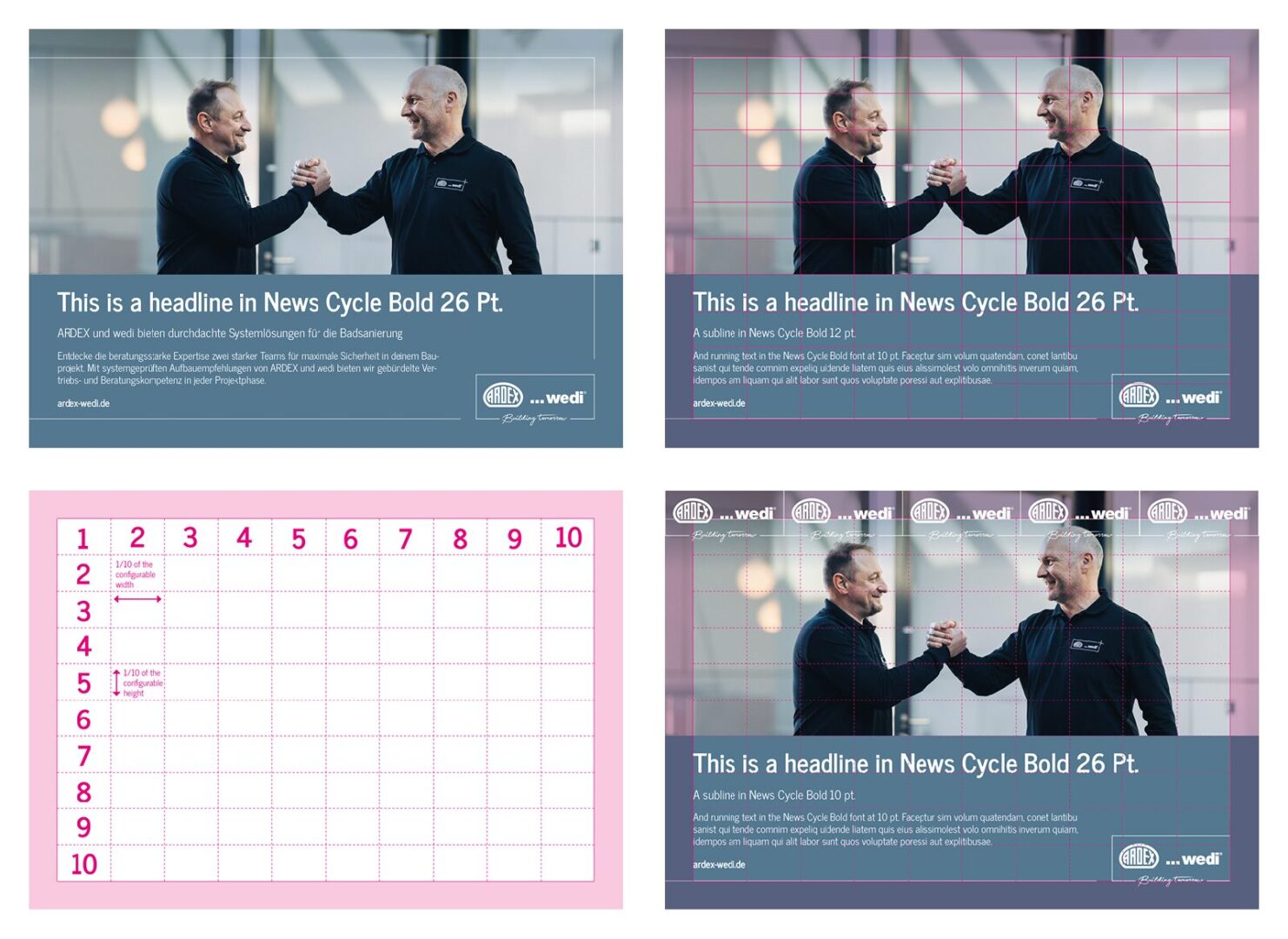 The image proportion is variable – depending on the text proportion – but always adapted to the grid.
