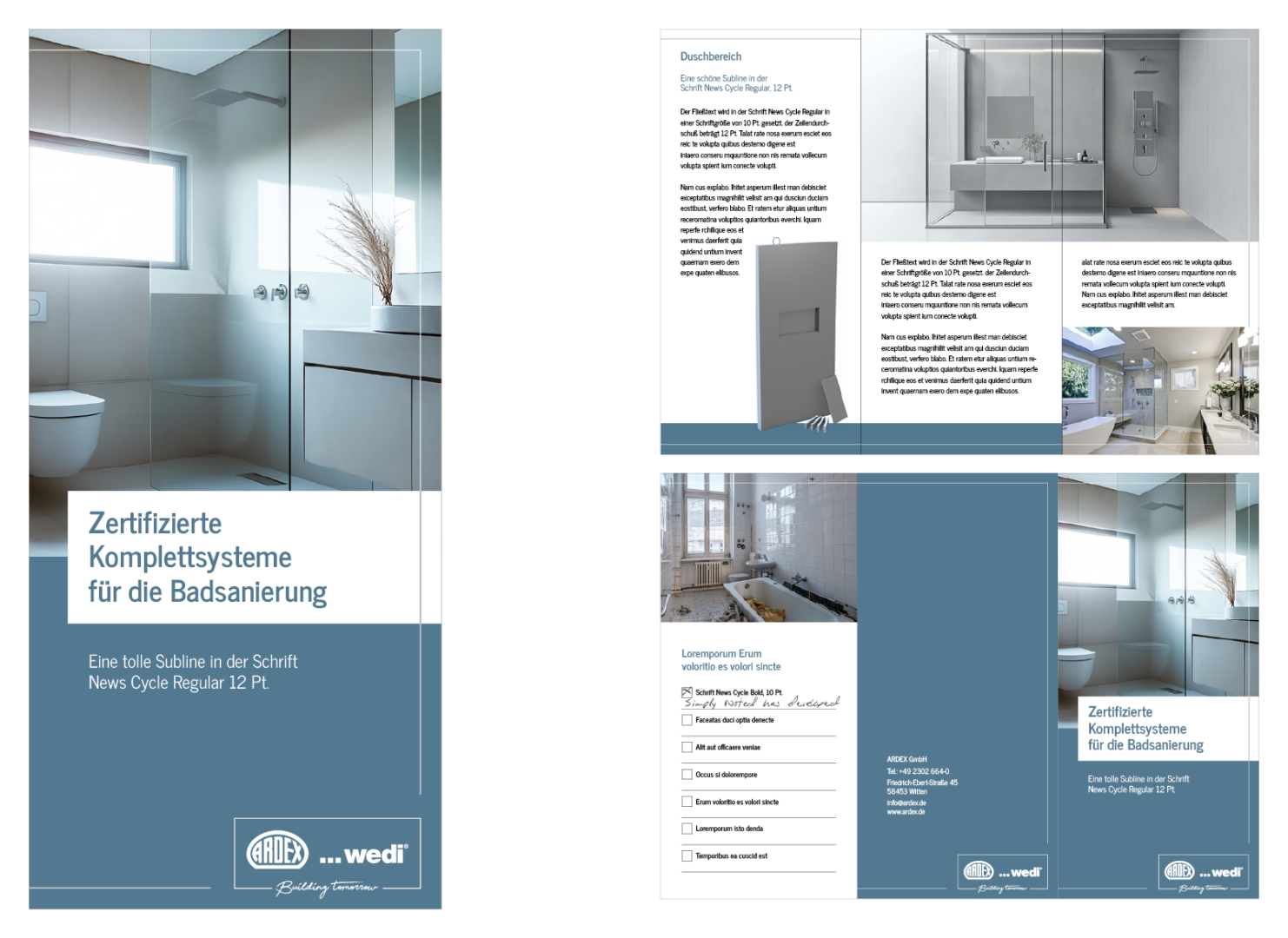 The title of the brochure should be easy to read thanks to the font size and should be as short as possible. The accompanying subline serves to provide further explanations.